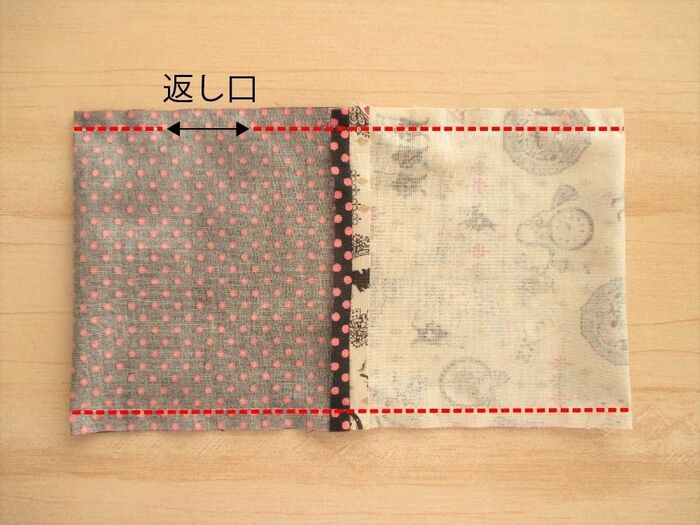 本体の生地を中表に合わせます。