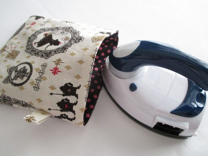 裏地を中に入れ、入れ口にアイロンをかけて形を整えます。