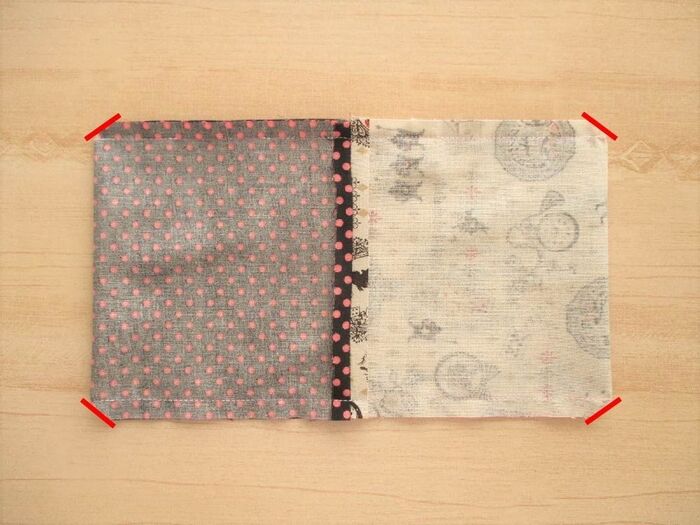 表地どうし、裏地どうしに生地を重ね直します。