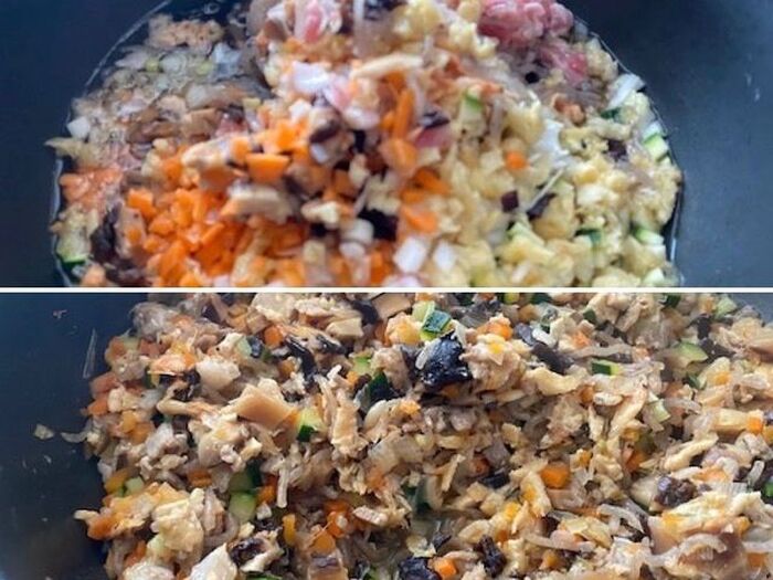 弱火にして 具材を2~3回に分けて加えていく