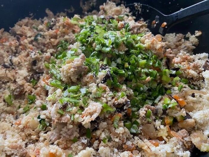全体が混ざったら仕上げにネギの青い部分を加える