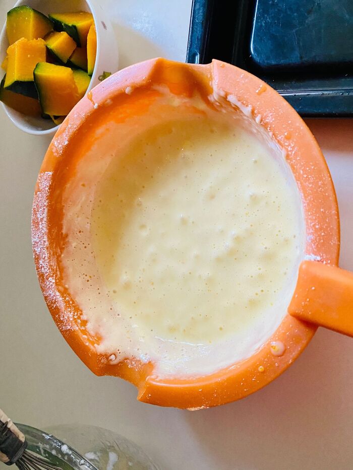 ※室内が暖かくなりましたが、あまり寒いとバターを入れた時にバターが凝固してしまうので、少し温めてもOKです。