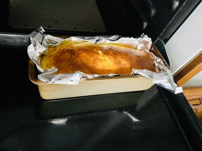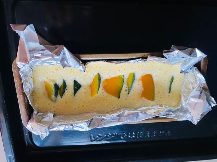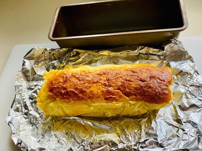 ⑤焼き上がりましたら、アルミシートを剥がします。