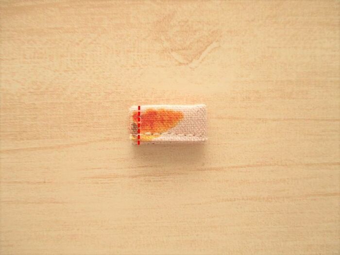 更に半分に折り、縫い留めます。
