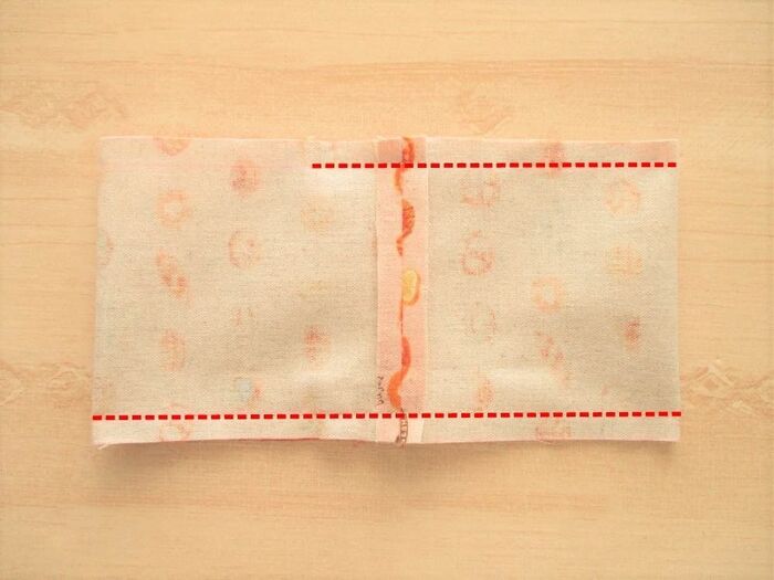 半分に折り、縫います。