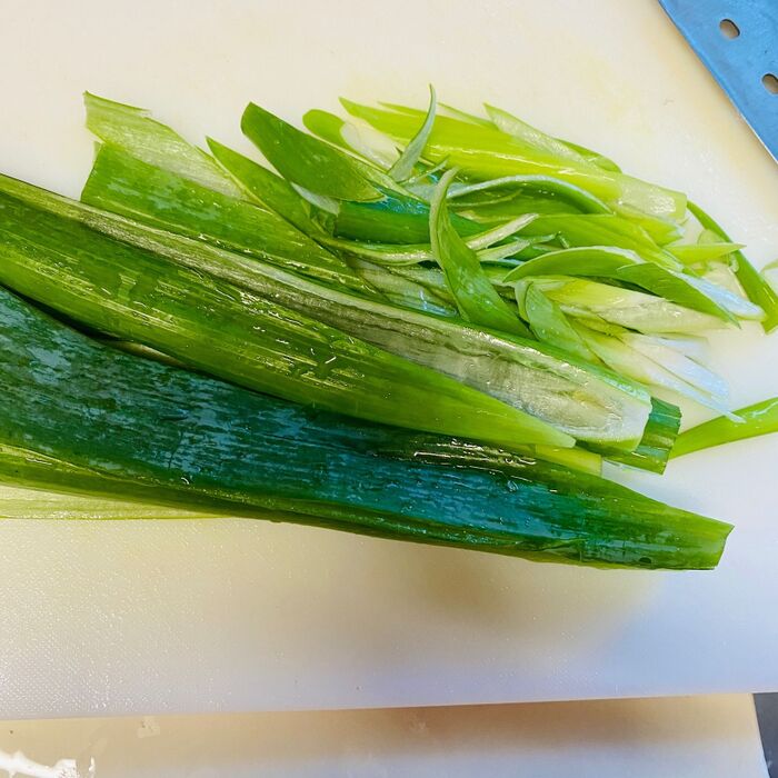 青い部分はチジミなどで使い、余ったら冷凍保存しています。