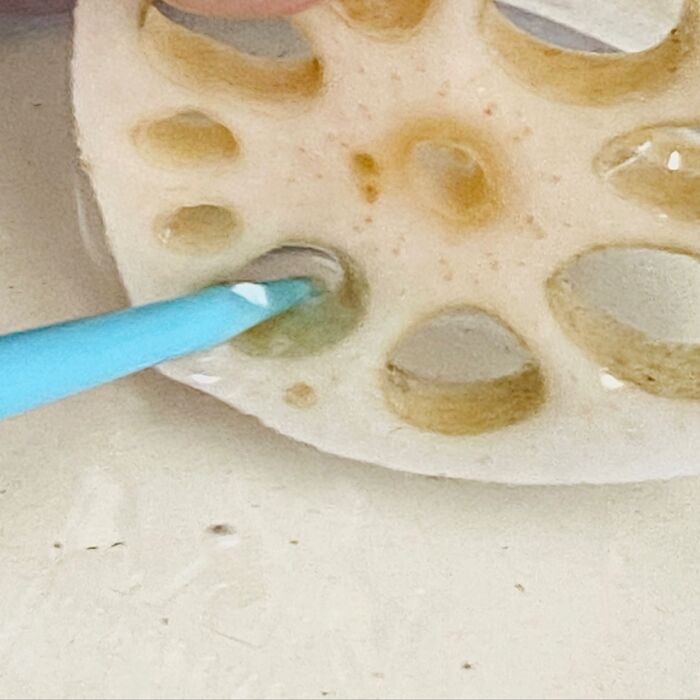レンコンの穴が黒いものがありましたら、箸で擦ると簡単にとれます。