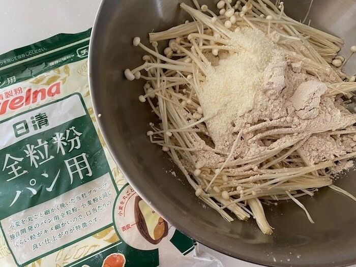 えのきは石づきを切り落とし 全粒粉 パルミジャーノを