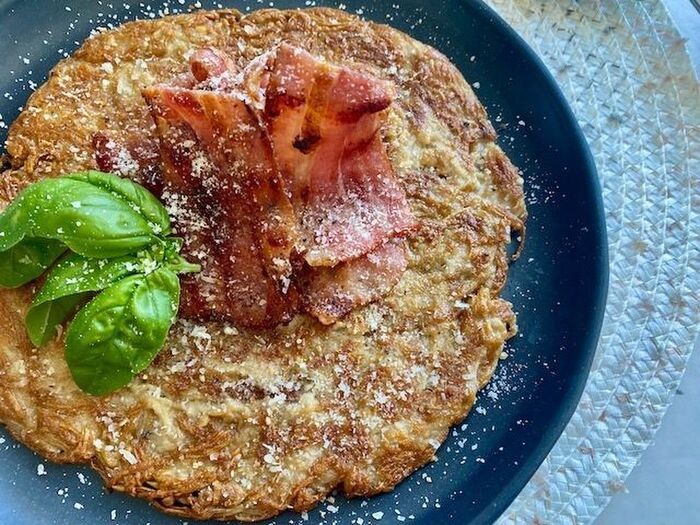 器に盛り付け カリカリベーコンとパルミジャーノ