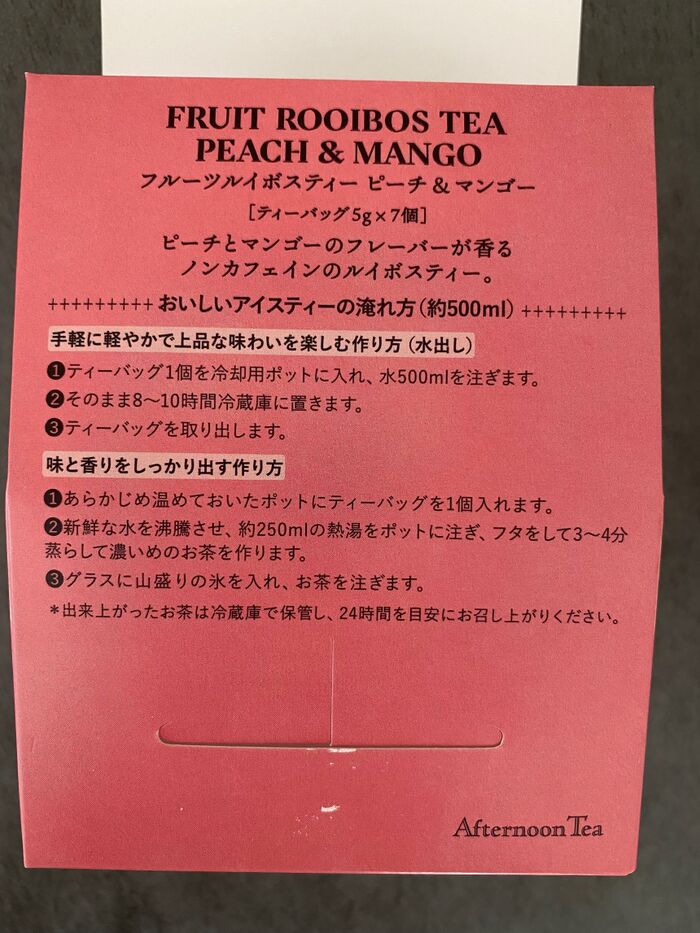 さっぱりとした味でピーチとマンゴーの爽やかな香りがしました。