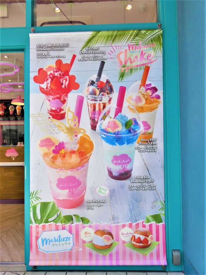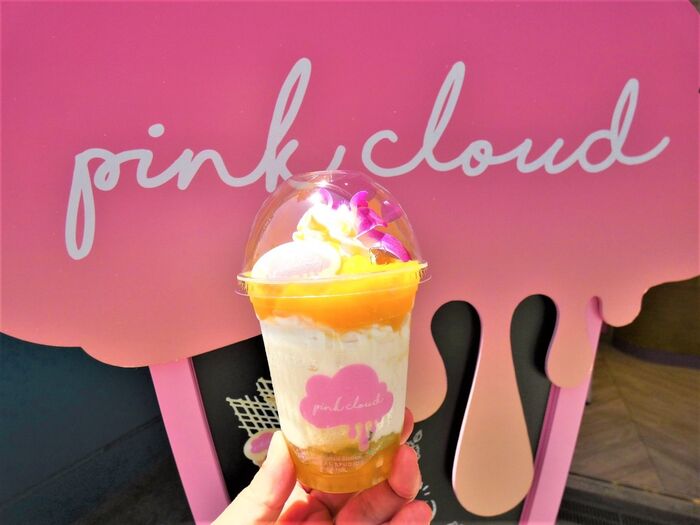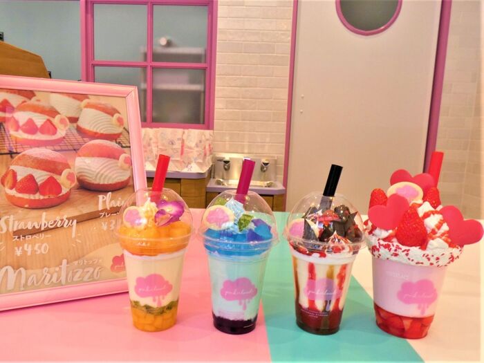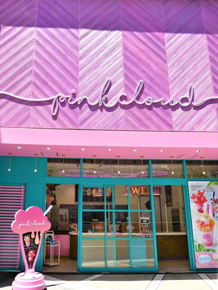 『ピンククラウド』は、女の子の「大好き」&「かわいい」をテーマにしたカラフルでハッピーなシェイク専門店です。実は、『ピンククラウド』はUSJのパーク敷地外初の常設飲食店なんですよ。