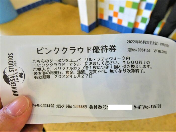 お得情報!!パーク内で飲食・お買い物でピンククラウド優待券を貰えます。