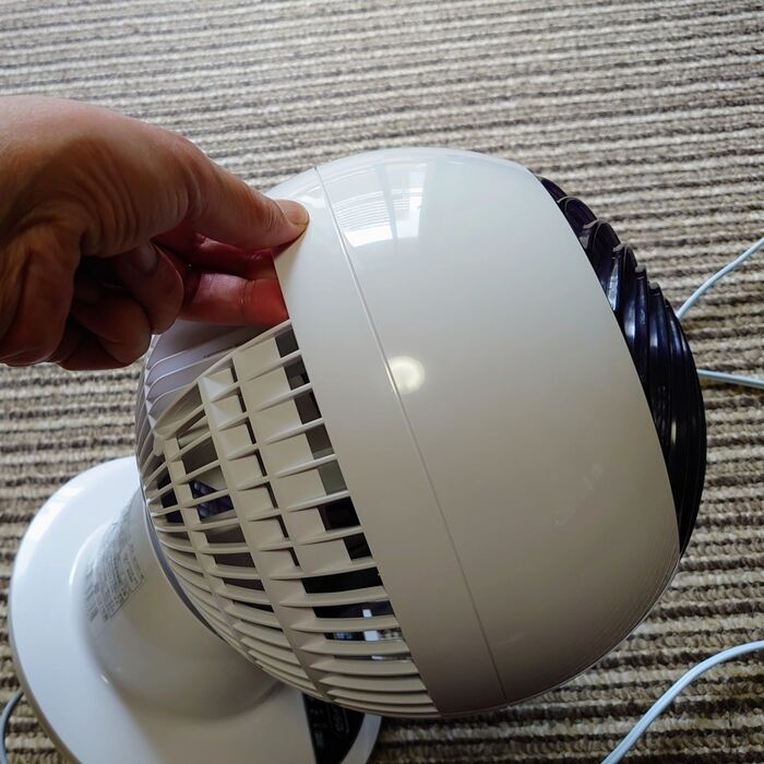羽根を掃除する時は、このツメが4か所あるので内側に押し込むと、開けられます