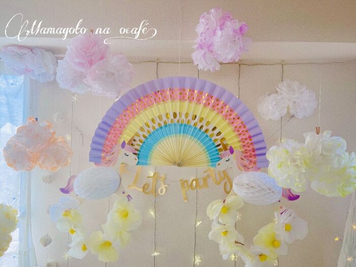 こちらは数年前にDAISOさんで購入したユニコーンなペーパーボール飾り。