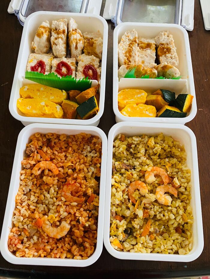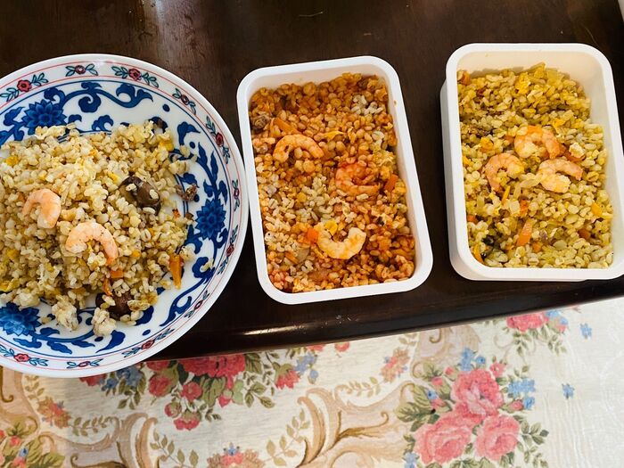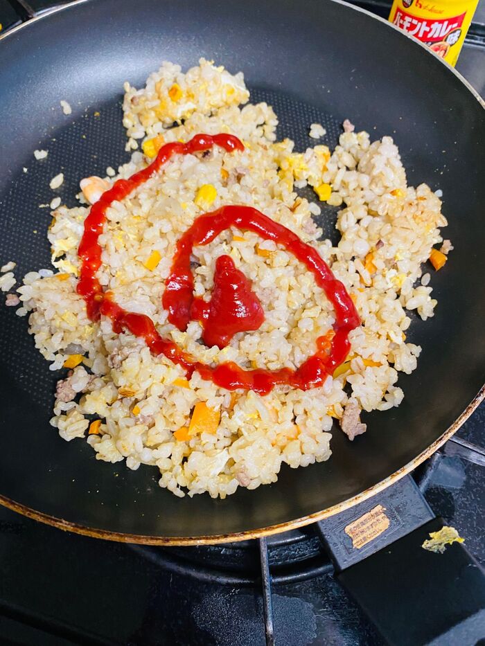 ③②のフライパンにまた①のチャーハンを3等分したものを入れ、