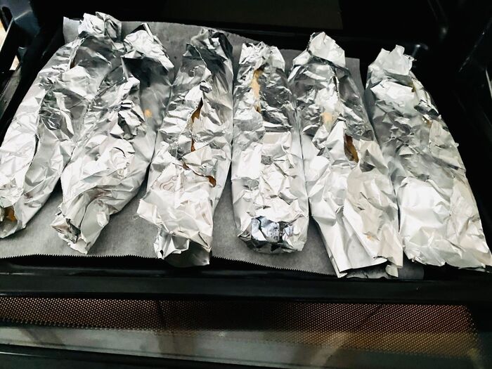 焼き上がりましたら、くっつかないアルミシートを外し、