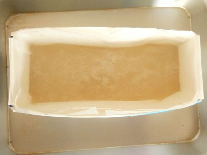 型に流し込み、あら熱が取れたら冷蔵庫で冷やし固めます。