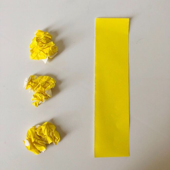 きれいに切れた1枚を短冊用に残したら、残りの3枚はぐちゃぐちゃに丸めます。