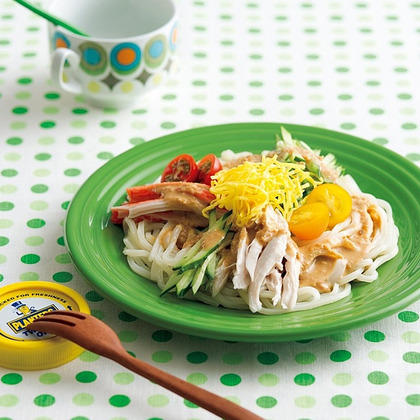 うどんを表示どおりにゆで、冷水でひやして水けをきる。器に盛って1の具材と錦糸卵をのせ、2のたれをかける。