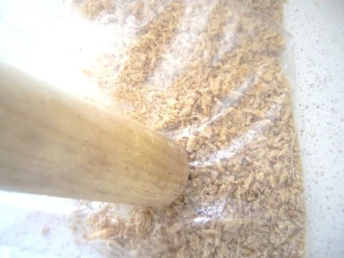 クラッカーはジップロックに入れて細かく上から麺棒で砕く。