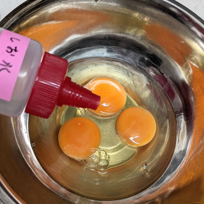 分量の塩と水を合わせ数分置き、塩が溶けたら容器に移す。