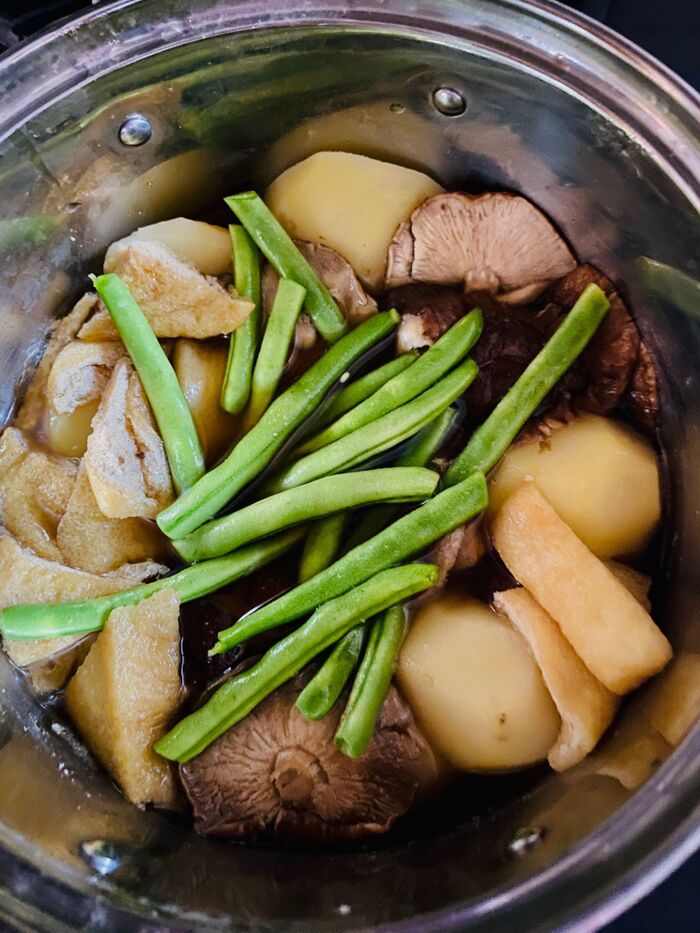 火を止め、あら熱が取れるまで味を含ませます。