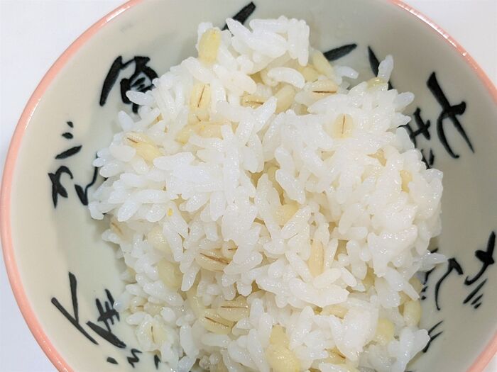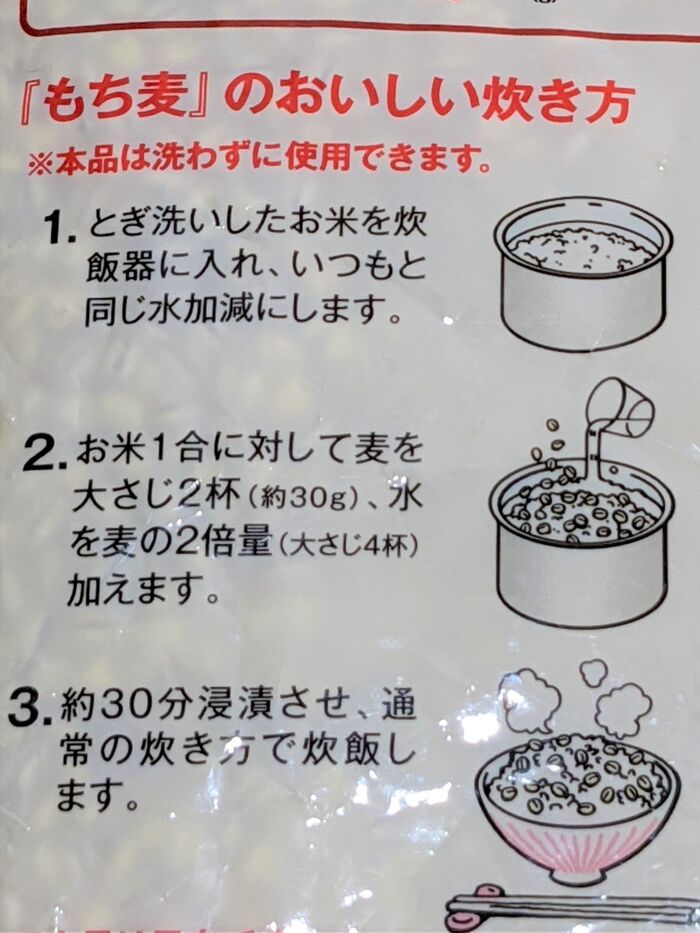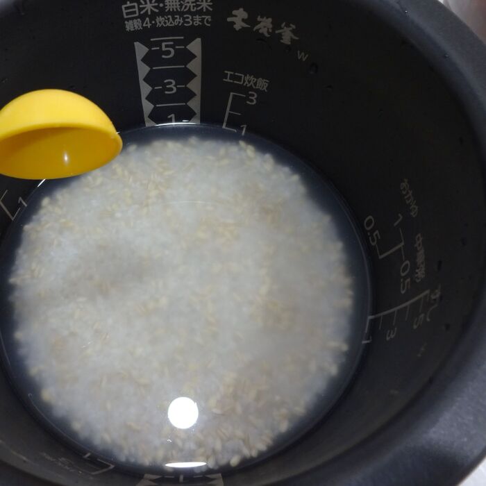 通常のお水に、大さじ2のもち麦に対して大さじ4の水を足します。
