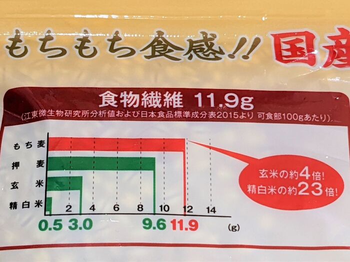 もち麦は精白米と比較すると約23倍の食物繊維!