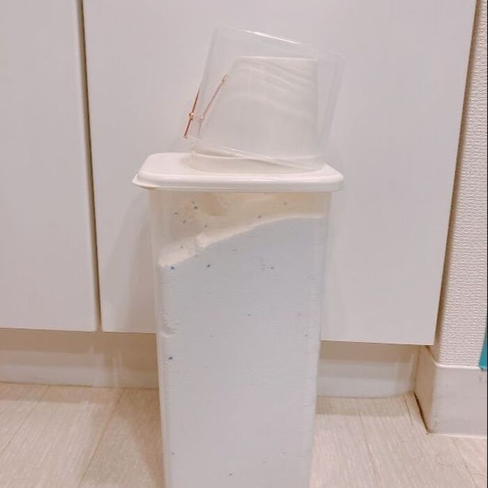 普段購入するアメリカのオキシクリーンは3.27キロなので、この容器2個に詰め替えて、残りは掃除などに消費する感じで使っています。