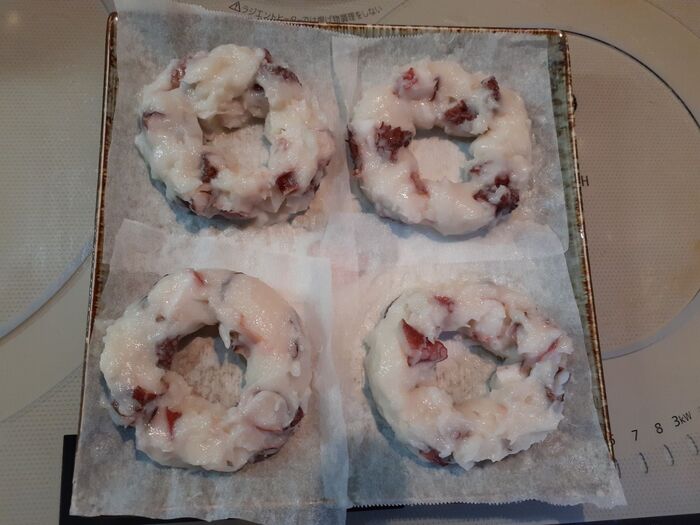②クッキングシートの上に絞り出す。