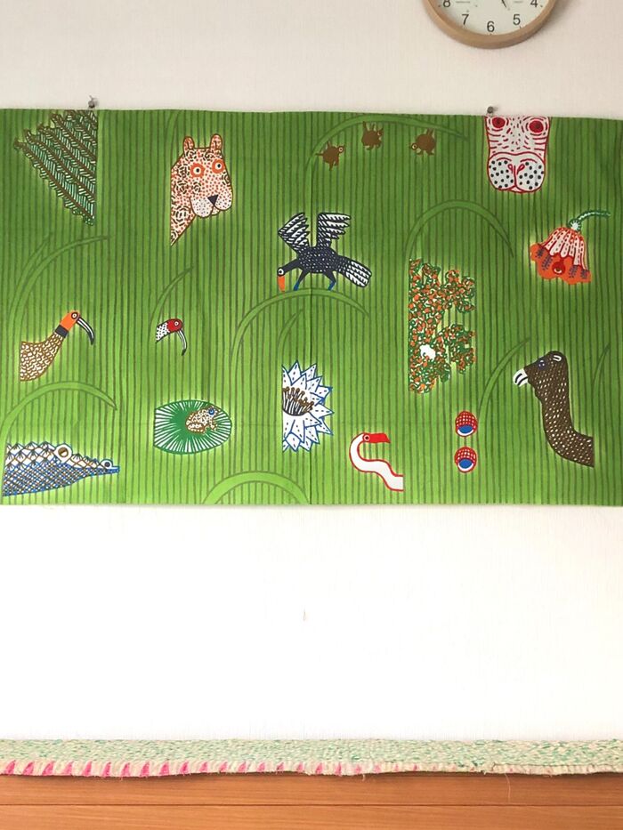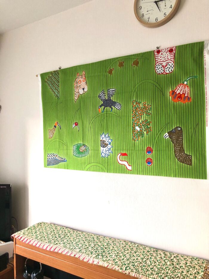 植物や大きな枝を置いているリビングにこのジャングル柄がよくマッチしました。