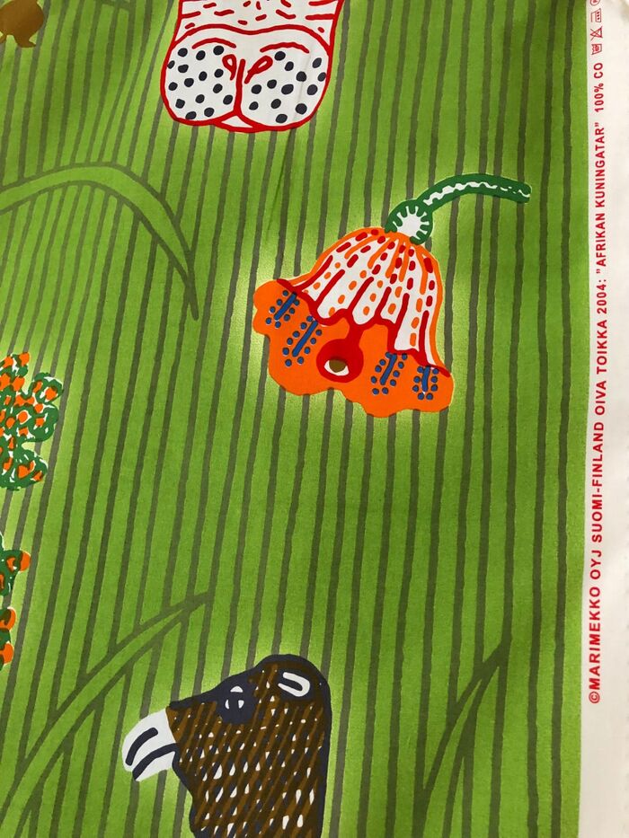 marimekkoの文字が入った布の耳は、デザイナーや年代まで書かれていてステキなので、あえてそのまま残しました♪
