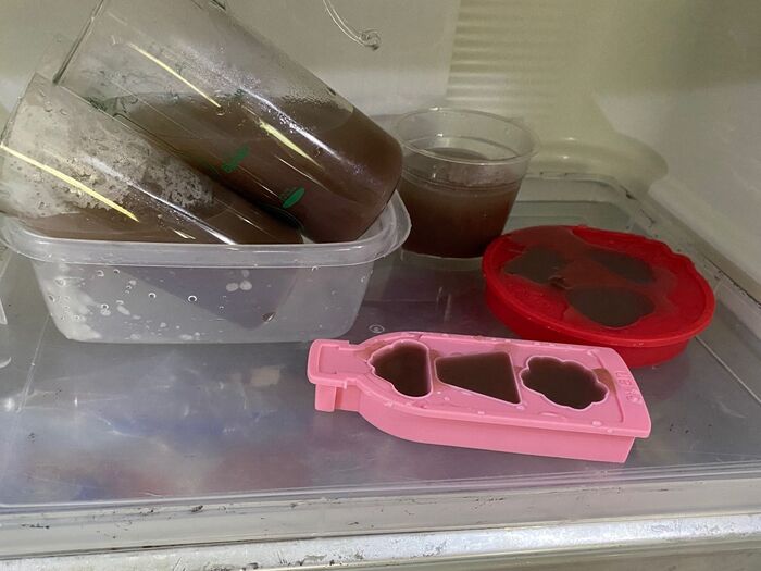③それを、トレーごと冷蔵庫で冷やし固めます。