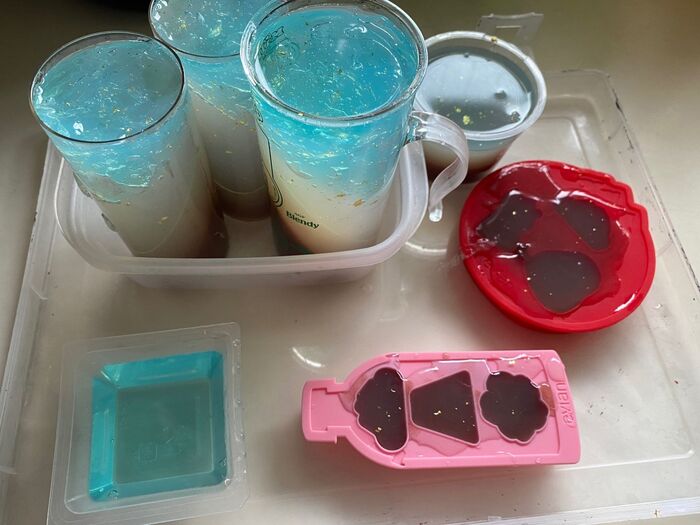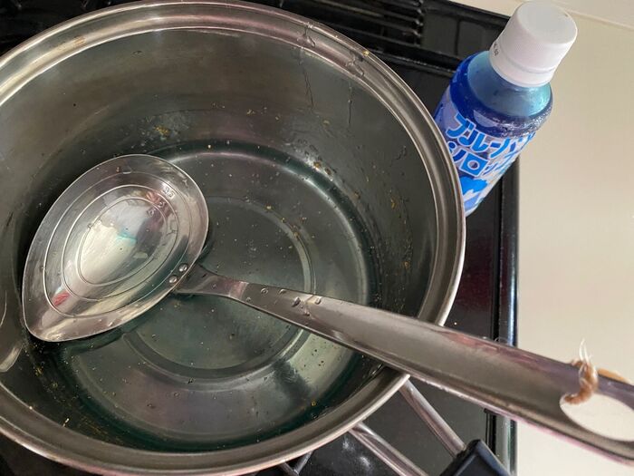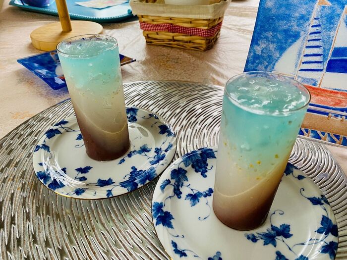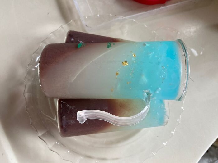 ⑥⑤の半分残しておいたものに、ブルーハワイを入れよく混ぜます。