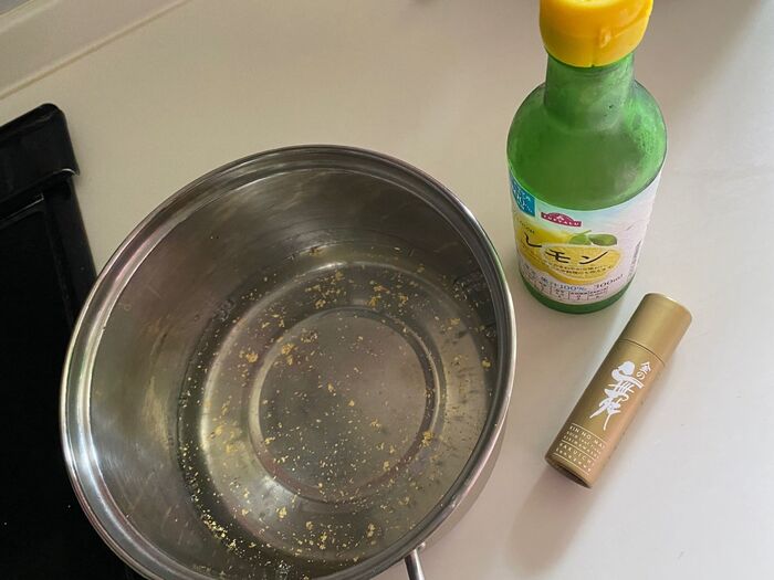 火を止めて、金泊パウダーを入れ軽く混ぜます。