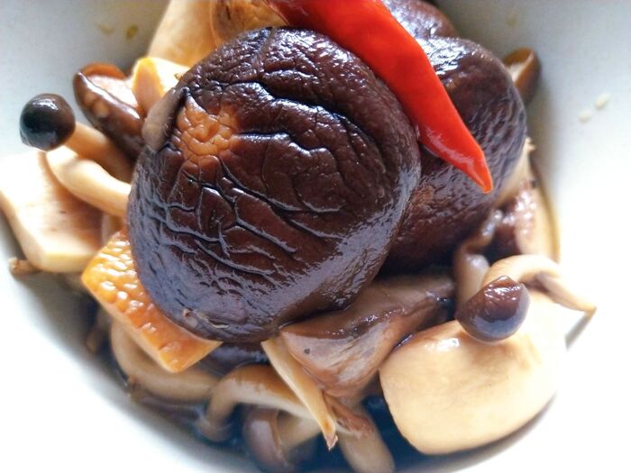 1.マッシュルームと椎茸は石づきを切る。エリンギは縦半分。しめじは小房に分ける