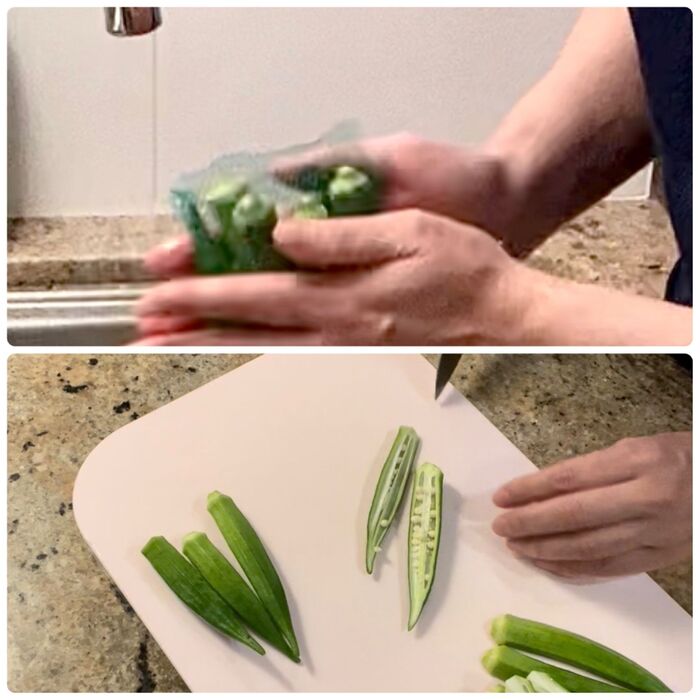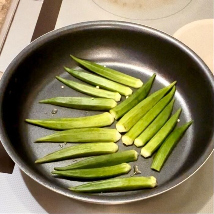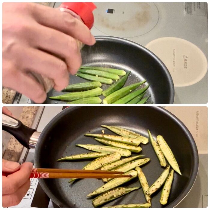 オクラはサッと水で濡らしたら半量の向きを入れ変え(すり合わせやすくなる)
