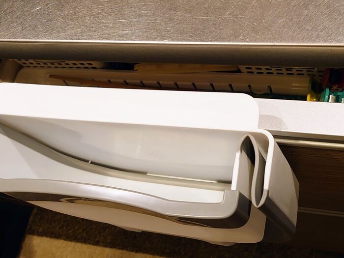 引き出しや扉に引っ掛けて使えます カットした野菜屑等をまな板からスライドさせてあっと言う間に片付けちゃう