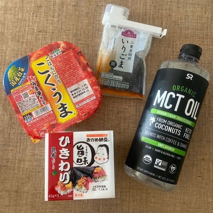 黒ゴマは鉄分豊富で抗酸化作用も高いと言われています。またMCTオイルは摂りすぎると