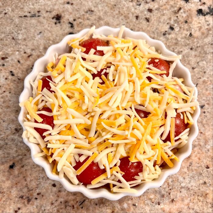 チーズをのせて温めたグリルやトースターで5分~こんがりするまで焼く。