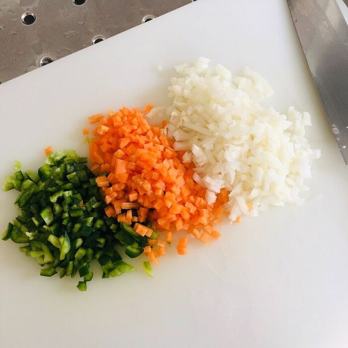 玉ねぎと人参、ピーマンは粗みじん切りに。