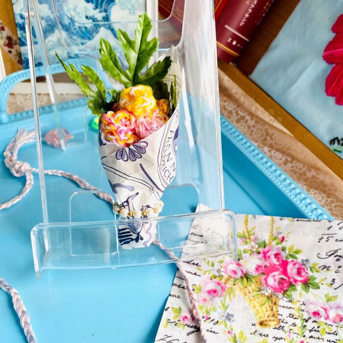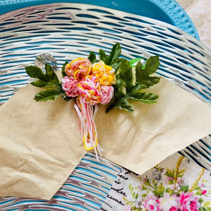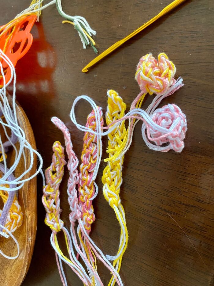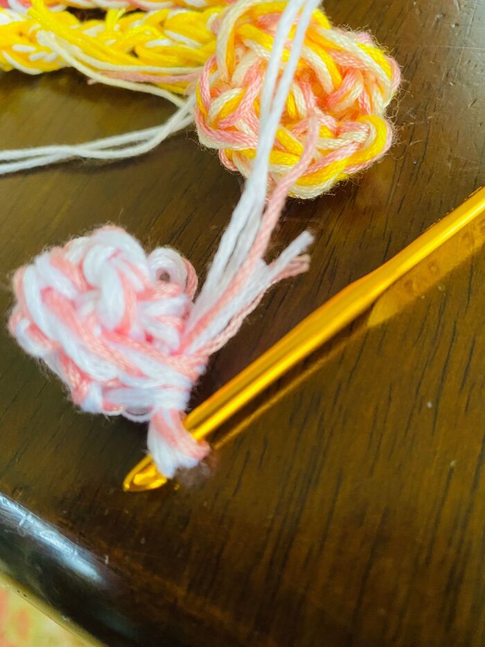 4本ぐらい束ねて、鎖編みで17目編んで2段編みます。
