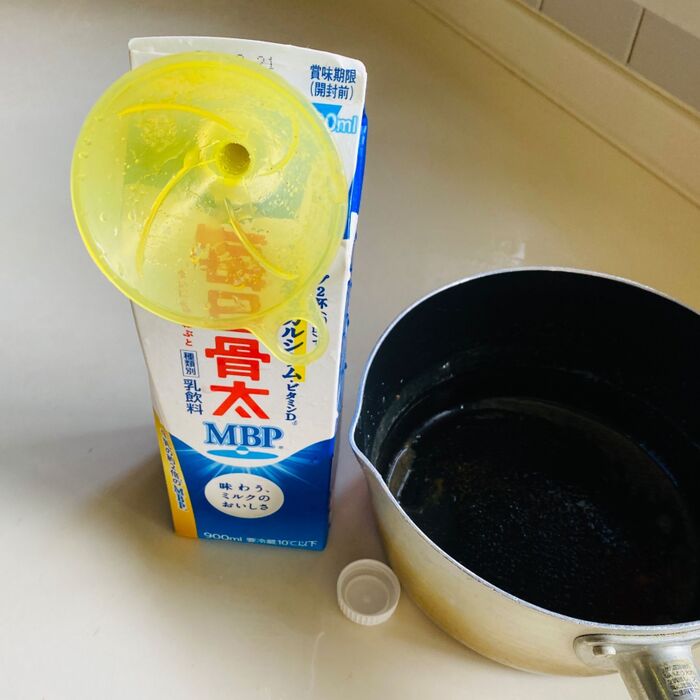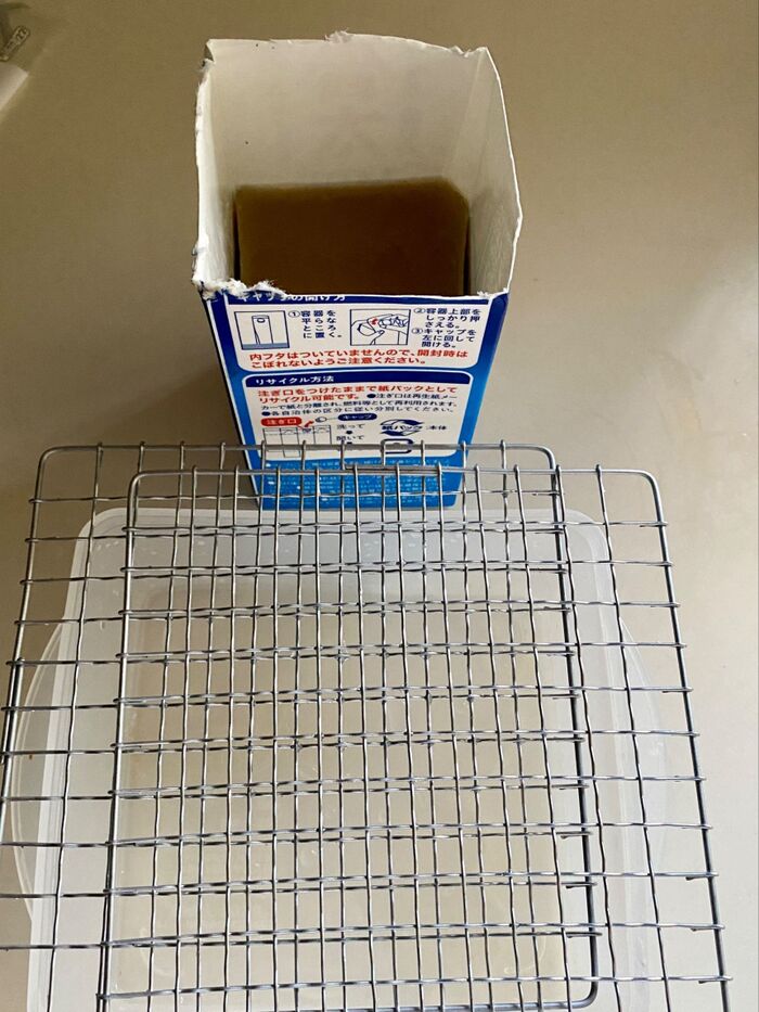 ②飲み終えた牛乳パックの容器を水洗いしました。