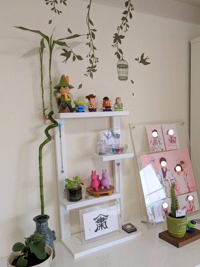 小さな緑の観葉植物や、小さな天然石、昔購入した水晶のペンダント等を