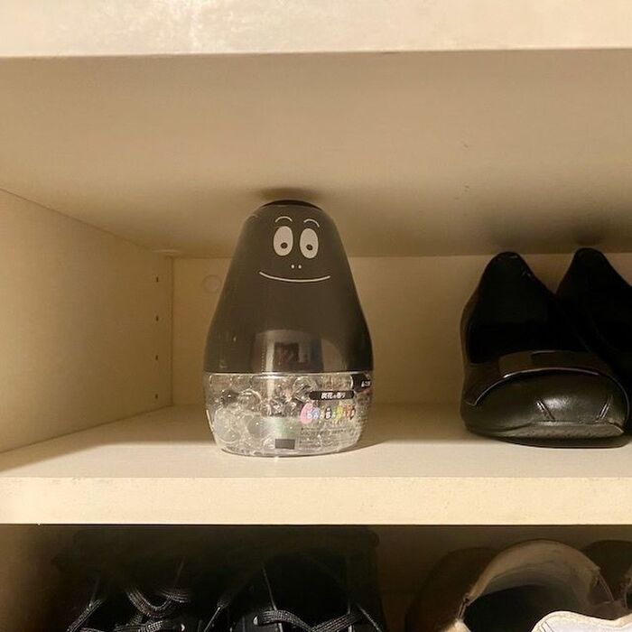 下駄箱を開けるとパッと目が合う〜