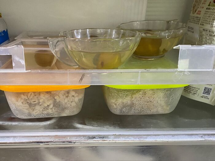 ④トレーごと、冷蔵庫の空いているスペースに入れて