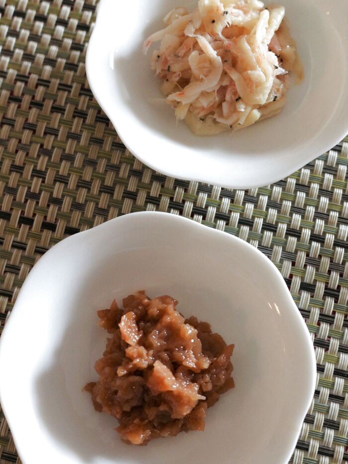 ④梅干しは種を除いて刻んでおく。③を丼に盛り、お好みで梅干しを加えて味を調えると出来上がり