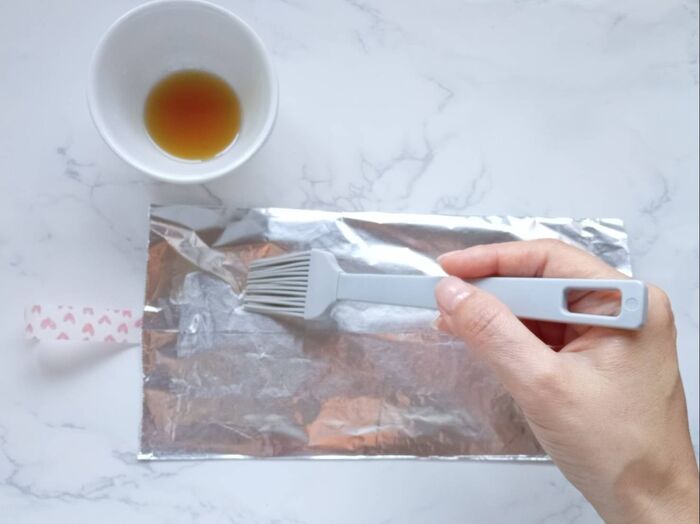 【6】端から2cmを除き、油(米油、ごま油、オリーブオイルなど)をうすく塗ります。