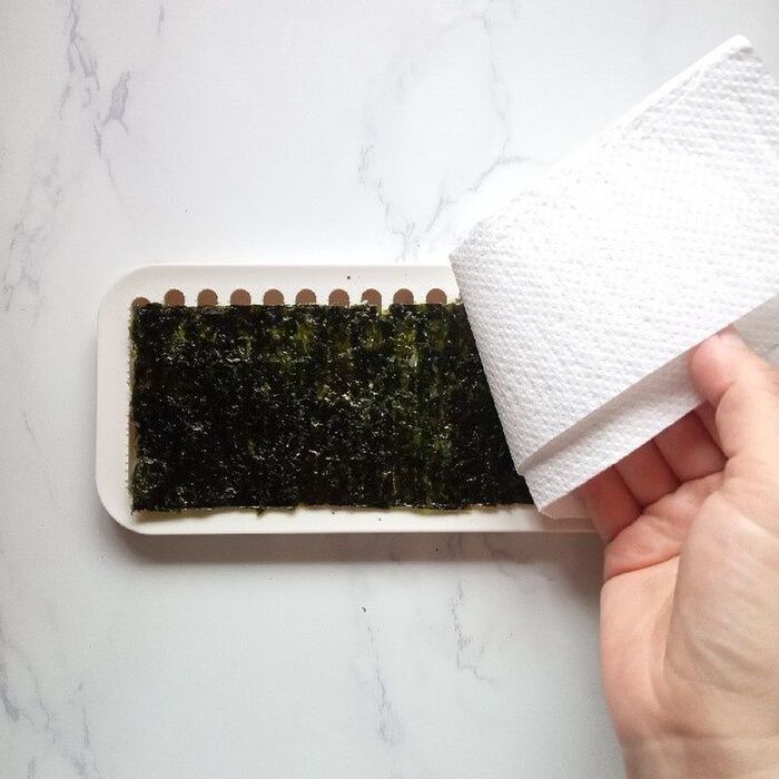 歯切れのよい「しっとり」のりのおにぎりがいい♡なら、のりに穴をあけて作ったり、のりを韓国のりに変えたり、自分の好みのおにぎりを作って下さい。