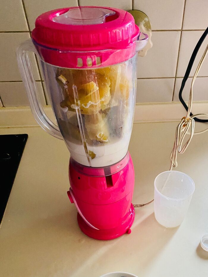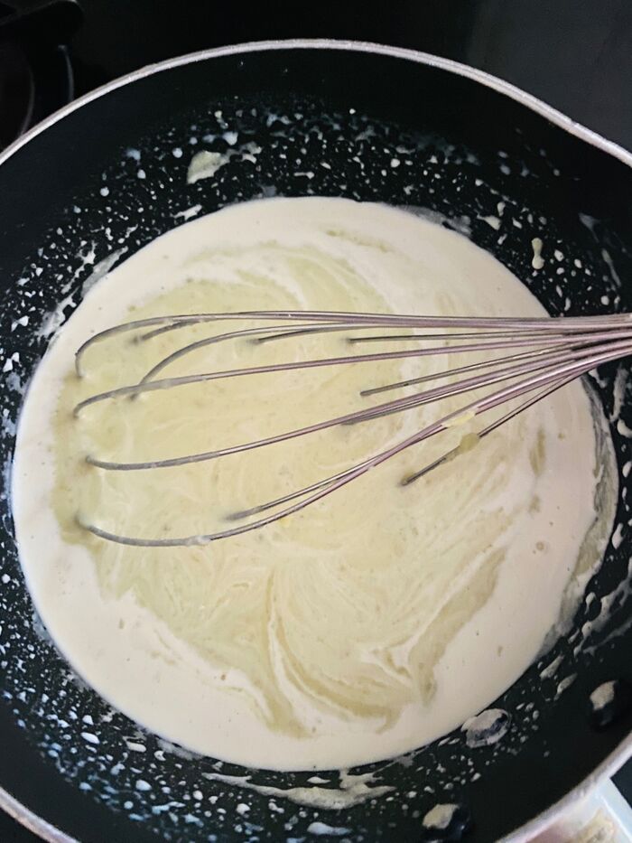水気を切り、牛乳を加えてミキサーにかけます。